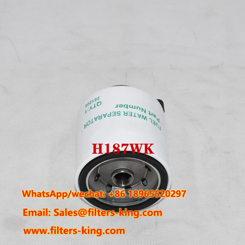 The H187WK Fuel Water Separator is designed as a high performance replacement for Hengst Fuel Water Separator used in industrial forklift engines. It effectively separates water and contaminants from diesel fuel to protect the fuel injection system and extend engine service life. This model is widely used in Clark Fuel Water Separator applications such as C500Y110-150PD and H500Y20-30PD forklifts.